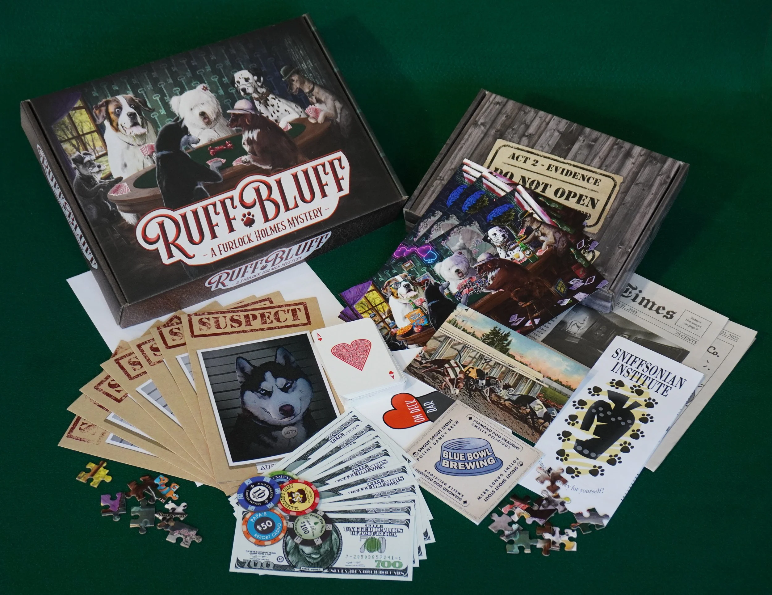 Released via Kickstarter by Trapped Puzzle Rooms in fall 2022, Ruff Bluff: A Furlock Holmes Mystery takes players through the story of Ms. Barbara Fetcher’s missing ruby bone. I led the design and development of this product, which takes players 6-10 hours to finish the experience’s four acts.